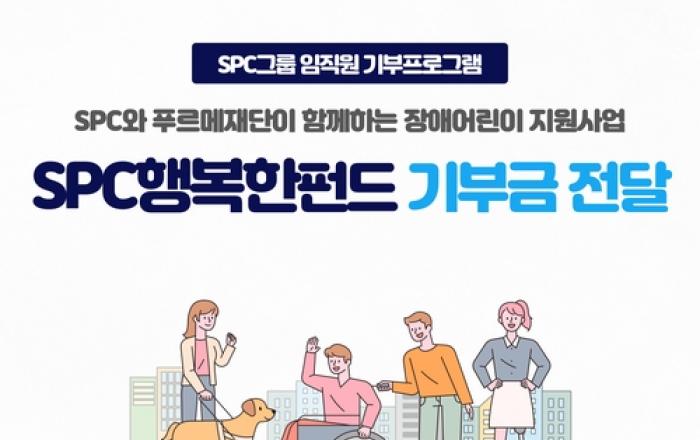 SPC그룹이 서울시 종로구 푸르메재단에서 장애인의 날을 맞아 장애어린이 지원을 위한 'SPC행복한펀드 기부전달식'을 진행했다고 19일 밝혔다. SPC행복한펀드는 임직원들이 매월 급여의 일정 금액을 기부하면 회사가 매칭펀드를 조성해 기부하는 프로그램으로, 2012년부