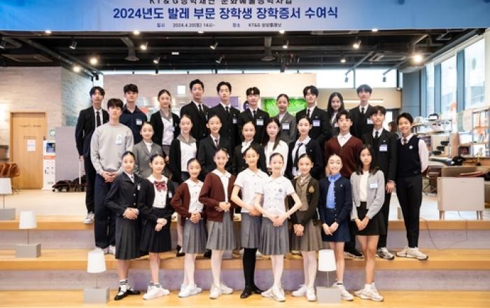 KT&G장학재단이 지난 20일 발레 부문의 청소년 인재를 발굴하고 육성하기 위해 문화예술 장학생을 선발하고 장학증서를 수여했다. '문화예술 장학사업'은 청소년 인재들을 국내외 무대에서 활약하는 예술가로 성장시키기 위한 KT&G장학재단의 우수인재 양성 장학 사업이다.