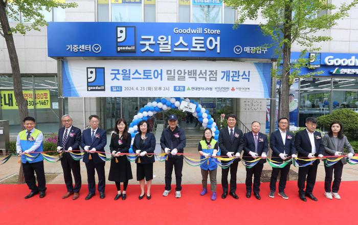 현대엔지니어링이 밀알복지재단과 함께 23일(화) ‘굿윌스토어밀알백석점’을 개관했다고 24일(수) 밝혔다. 이날 개관식에는 현대엔지니어링 홍현성 대표이사, 경기도의회 이택수·곽미숙의원, 한국장애인고용공단 장동수 서울지역본부장, 밀알복지재단 홍정길 이사장등