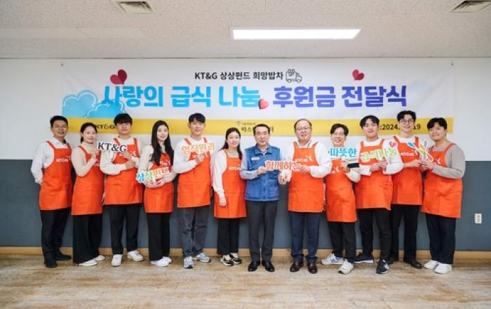 KT&G가 어려운 이웃들의 무료급식을 지원하기 위해 '사랑의 급식 나눔' 후원금 약 1억 2천만 원을 사회복지공동모금회에 전달했다. '사랑의 급식 나눔'은 KT&G가 취약계층의 삶의 질 향상과 고른 영양 섭취를 돕고자 지난 2018년부터 이어온 무료급식 지원 활동
