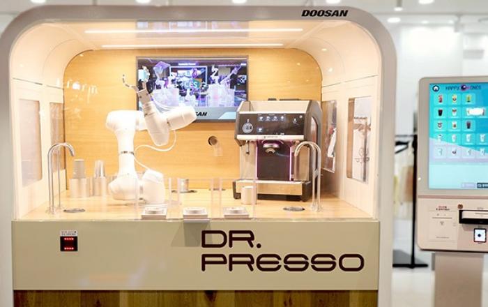 두산로보틱스가 ‘모듈러 로봇카페’를 내놓으며 무인 로봇카페 사업에 본격적으로 나선다.두산로보틱스는 무인 음료제조시스템 전문기업 플레토로보틱스와 전략적 파트너십을 체결하고, 무인로봇 카페 시스템인 ‘모듈러 로봇카페’를 선보인다고 2일 밝혔다.▲ 두산로보틱스가 출시한 ‘모