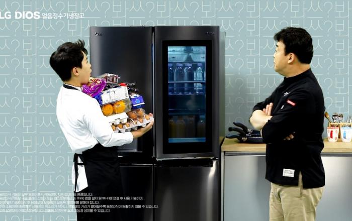 LG전자가 방송인 백종원과 함께 디오스 얼음정수기냉장고의 차별화된 편리함을 보여주는 새 광고를 20일 선보였다. 이날 MBC 새 예능프로그램 '백파더: 요리를 멈추지 마!' 첫 방송의 1부가 끝난 후에 나온 광고에는 '백파더'의 주인공인 백종원과 양세형이 깜짝 출연했다