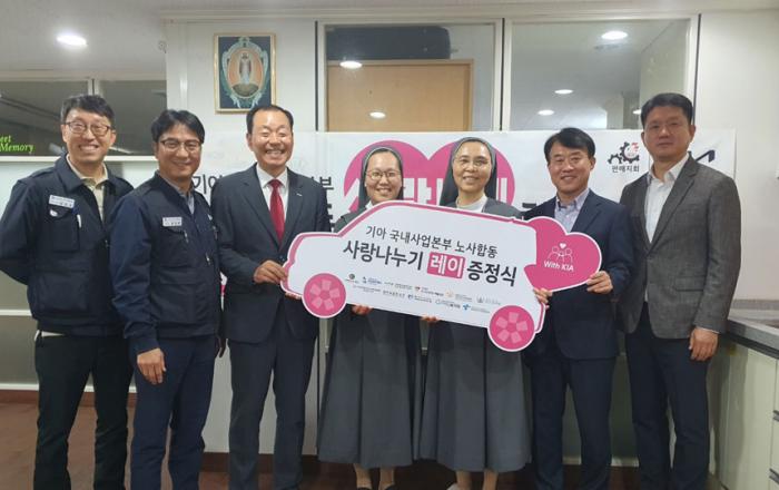 기아 국내사업본부 노사가 뜻을 모아 우리 사회의 다양한 소외계층을 위한 차량 및 장학금 기부에 나섰다. 기아 노사는 25일(수) 인천광역시 연수구에 위치한 ‘까리따스 이주민문화센터’와 서울특별시 노원구의 ‘재현중학교’에서 국내사업본부 판매지원실 정진태 실