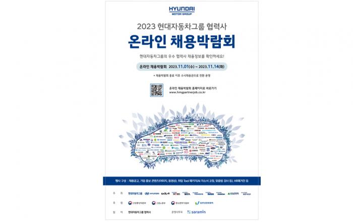 현대자동차그룹과 협력사가 자동차산업의 새로운 채용 동반성장 모델을 구축하기 위한 '2023 현대자동차그룹 협력사 온라인 채용박람회'를 개최한다고 31일(화) 밝혔다. 2012년 주요도시 3곳(서울, 광주, 대구)에서 시작한 현대차그룹의 협력사 채용박람회는