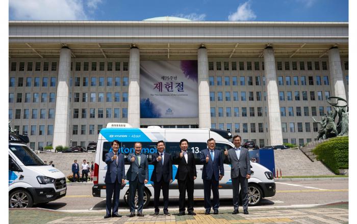 현대자동차가 국회에서 인공지능(AI)과 자율주행 기술을 결합한 ‘자율주행 로보셔틀’ 시범서비스를 선보인다. 현대자동차와 국회사무처는 5일(수) 서울 여의도 국회에서 김진표 국회의장, 이광재 국회사무총장, 조경호 의장비서실장, 홍형선 사무차