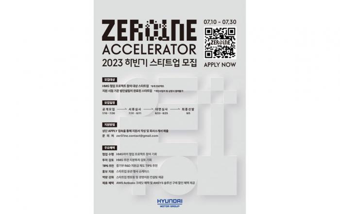 현대자동차그룹이 오픈이노베이션 플랫폼 ‘제로원 액셀러레이터(ZER01NE ACCELERATOR)’의 2023년 하반기 스타트업 공개 모집을 10일(월) 시작한다고 밝혔다. ‘제로원 액셀러레이터’는 현대자동차그룹 내 현업팀이 직접 제안한 아이디어를 기반으로