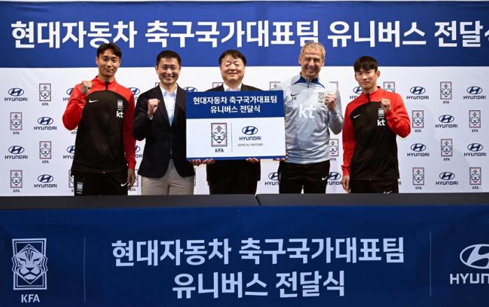 현대자동차가 대한민국 축구 국가대표팀이 최상의 컨디션으로 경기에 나설 수 있도록 대한축구협회(KFA)에 전용버스를 후원한다. 현대자동차는 20일(월) 파주 NFC(축구 대표팀 트레이닝센터)에서 국내사업본부장 유원하 부사장, 위르겐 클린스만 축구 국