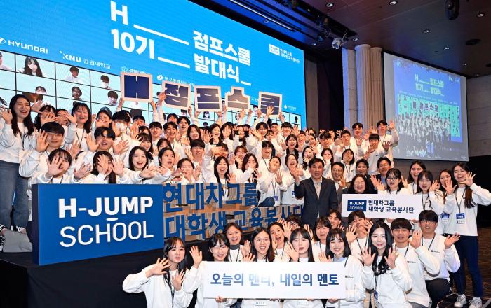 현대자동차그룹이 청소년 교육 사각지대 해소를 위한 사회공헌 프로그램 ‘대학생 교육봉사단 H-점프스쿨’ 10기 발대식을 진행했다. 28일(화) 양재 엘타워(서울 서초구 소재)에서 개최된 발대식 현장에는 한용빈 현대자동차그룹 부사장, 이의헌