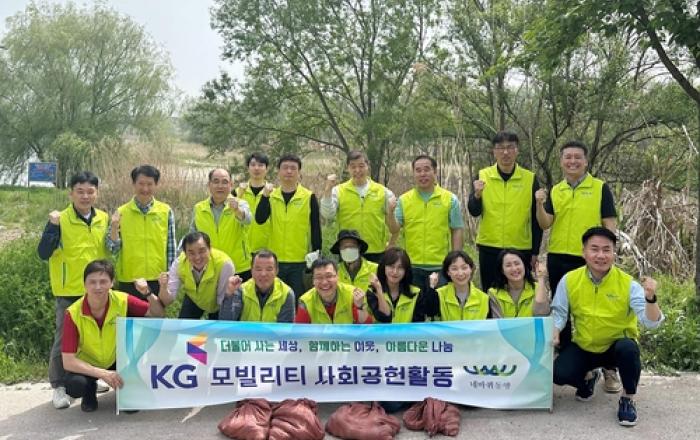KG 모빌리티(www.kg-mobility.com, 이하 KGM)가 사내 봉사단인 '네바퀴동행' 재출범과 동시에 지역사회에 보답하기 위한 사회공헌활동의 일환으로 KGM 본사가 위치한 평택시 소재의 안성천 환경정화 활동을 전개했다고 29일 밝혔다. KGM 임직원들로