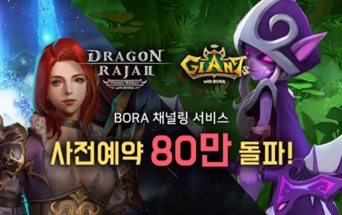 블록체인 디지털 콘텐츠 플랫폼 프로젝트 ‘BORA(보라)’가 모바일 게임 ‘드래곤라자2’와 ‘자이언츠’의 채널링(Channeling) 서비스 전체 사전예약이 80만을 돌파했다고 6일 밝혔다.BORA는 국내 게임 개발사 스카이문스테크놀로지(SKYMOONS TECHNOLO