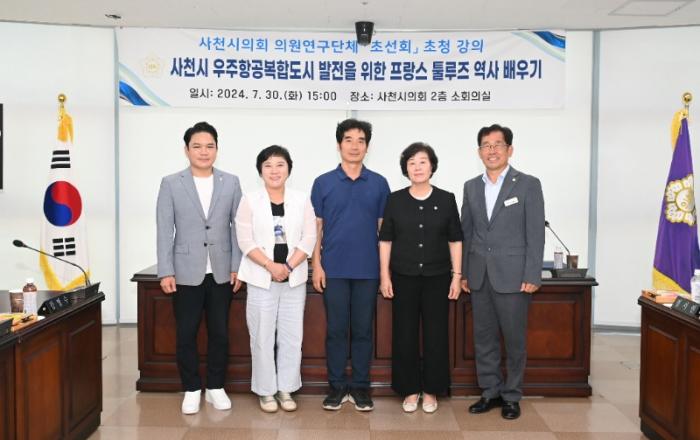 ▲ 경남포스트 제공사천시의회 의원연구단체인 ‘초선회(회장 진배근)’는 30일 시의회 2층 소회의실에서 우주항공복합 중심도시로 자리매김하기 위한 전문가 초청 강연을 실시했다.▲ 사천시 우주항공복합도시 발전을 위한 프랑스 툴루즈 역사 배우기 강의 단체사진(사천시 제공) 이