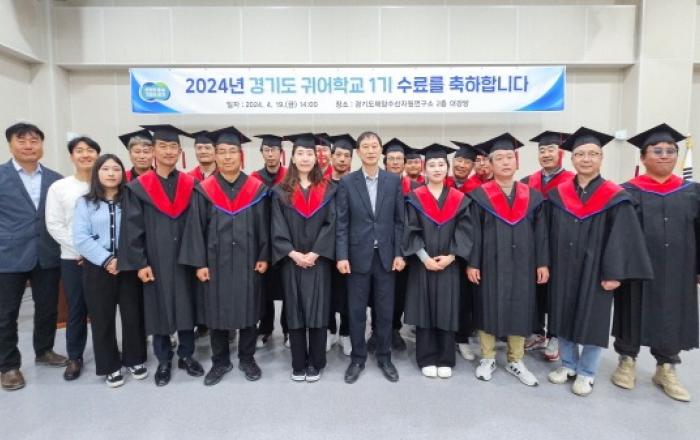 활기찬 경기어촌을 이끌어갈 예비 수산인들을 위한 교육기관인 경기도 귀어(歸漁)학교가 19일 해양수산자원연구소 다목적강당에서 2024년 1기 수료식을 진행했다. 이날 수료식에는 교육 수료생 17명과 경기도 귀어학교장인 김성곤