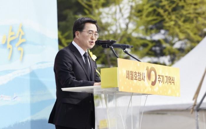 김동연 경기도지사가 16일 세월호 참사 10주기 기억식에 참석해 대한민국의 현실은 세월호 참사가 있었던 10년 전에서 한 발짝도 나아가지 못했다며 세월호의 교훈이 우리 사회에 온전히 뿌리내리도록 끝까지 기억하겠다고 밝혔다.