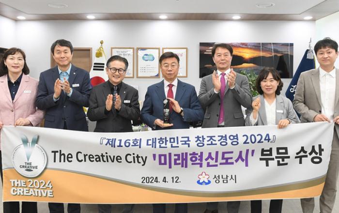 성남시가 12 일 ‘ 대한민국 창조경영 2024’ 미래혁신도시 부문에 선정됐다 .