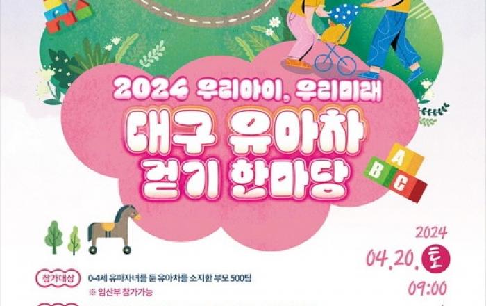 대구광역시는 출산에 대한 관심을 높이고, 가족의 소중함을 일깨우는 기회의 장을 마련하기 위해, 4월 20일(토) 두류공원 인라인스케이트장에서 ‘2024년 제11회 유아차 걷기 한마당’을 개최한다. 이날 행사는 0~4세 자녀를 둔 부모 또는 임산부 가정 300팀