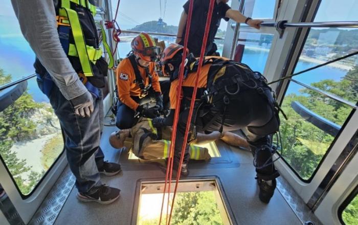 삼척시 해양관광센터가 18일 해상케이블카 합동인명구조 훈련을 진행했다.합동인명구조훈련은 해상케이블카를 이용하는 관광객들의 안전을 위해 진행하는 것으로 삼척시는 매년 유관기관과 함께 반기별로 2회씩 정례적으로 훈련을 진행하고 있다.이번 훈련에는 삼척시 해상케이블카 근무요