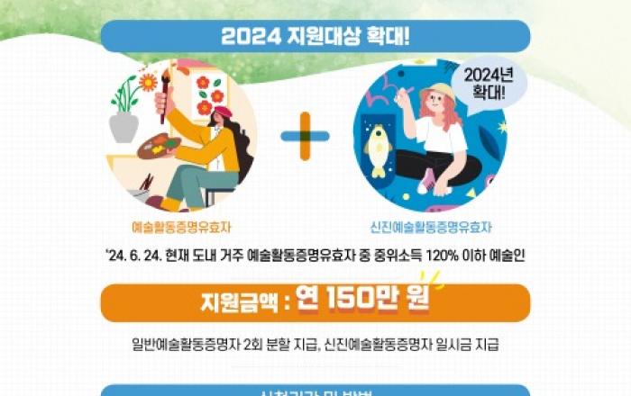 민선 8기 경기도 대표 정책 가운데 하나인 ‘예술인 기회소득’ 신청이 24일 시작된다. 대상은 도내 27개 시․군(수원·용인‧고양‧성남 미참여)에 거주하는 일반 및 신진 예술활동증명유효자 중 기준중위소득 120% 수준 이하 예술인이다.
