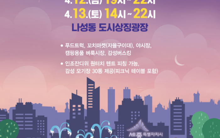 세종시 도시상징광장에서 봄기운을 가득 느낄 수 있는 도심 속 캠핑 축제가 열린다. 세종특별자치시(시장 최민호)와 세종시설관리공단(이사장 조소연)은 도시상징광장 활성화와 지역 상권의 활기를 되찾기 위해 12일과 13일 양일간 도시상징광장에서 즐기는 ‘빌딩