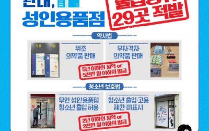 ※ 보도 자료에 공개된 범죄사실은 재판을 통해 확정된 사실이 아님을 유의해 주시기 바랍니다.(보도사유 : 동종 범죄․피해의 급속한 확산 방지) 청소년들의 출입을 제한하지 않거나 가짜 발기부전치료제를 판매한 성인용품 업주들이