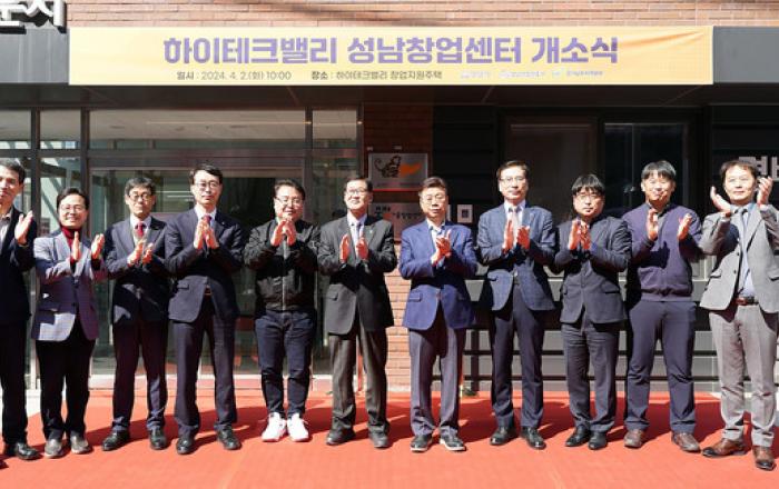 성남시가 한국토지주택공사 (LH) 와 협력사업으로 추진한 하이테크밸리 성남창업센터 개소식을 2 일 오전 10