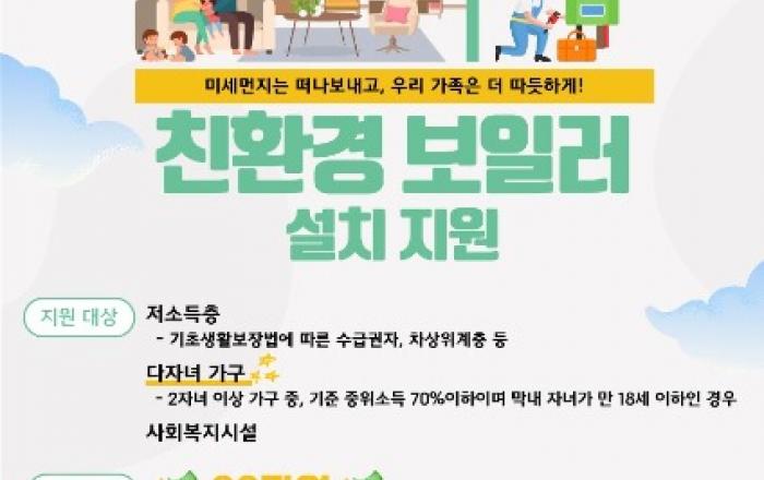 경남도는 올해 10억 원을 투입해 저소득층·취약계층에 가정용 친환경 보일러 1,644대를 보급할 계획이다.지원 대상은 차상위계층, 장애(아동)수당 수급자, 한부모가족지원 대상자 등 저소득층·취약계층이다.특히, 올해는 기준중위소득 70% 이하인 2자녀 이상 다자녀가구와