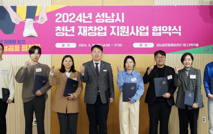 성남시는 창업에 실패한 경험이 있는 이들을 대상으로 하는 ‘ 청년 재창업 지원사업 ’ 참여자 7 개 팀