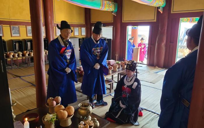 공자와 성현들을 기리는 춘기 석전대제가 14일 세종특별자치시 전의면 전의향교(전교 박종건)에서 유림 및 지역 주민 등 100여 명이 참석한 가운데 성대하게 봉행됐다. 석전대제는 매년 음력 2월과 8월의 첫 정일(丁日)에 향교의 대성전인 문묘에서 공자를 비롯한 성현들