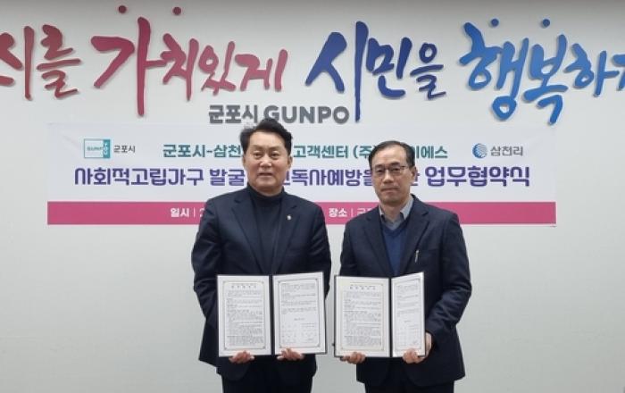 군포시는 13일 고독사 예방과 사회적 고립가구 안전망 확충을 위해 삼천리도시가스 군포 고객센터 협력업체인 ㈜올원이에스와 업무협약(MOU)을 체결했다고 밝혔다. 이번 협약에 따라 삼천리 도시가스 고객센터 검침원 19명은 군포시 명예사회복지공무원인 '희망나름단' 으로