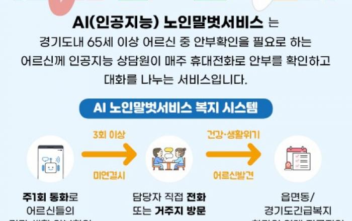 # 연천군에 거주하는 80대 A씨는 인공지능 노인말벗서비스 이용자다. 3차례 AI전화에 대한 응답이 없자 경기도사회서비스원 직원이 유선으로 연락한 결과, 얼마 전 자녀 상을 겪었고 배우자도 치매 증상이 악화하고 있어 심신이 괴롭다는 말을 들었다. 담당
