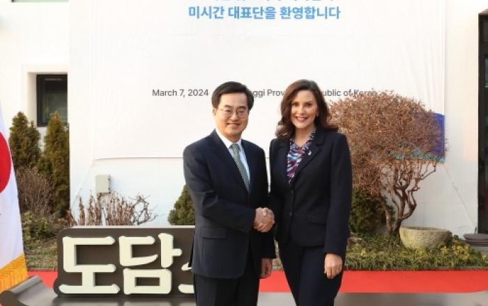 김동연 경기도지사가 그레첸 휘트머(Gretchen Whitmer) 미국 미시간 주지사를 만나 경기도와 미시간주 간 첨단모빌리티, 신재생에너지, 4차산업혁명센터, 청년 교류 등을 주제로 협력 방안을 논의했다. 김동연 지사는 7