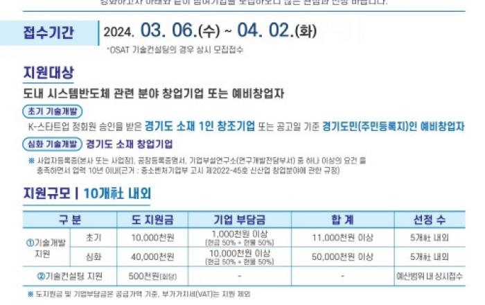 경기도와 한국나노기술원이 시스템반도체 분야 창업기업을 대상으로 ‘2024년도 경기도 시스템반도체 후공정(OSAT) 분야 기술개발 지원사업’ 참여기업 1차 공모를 4월 2일까지 진행한다. 해당 사업은 시스템반도체 산업 육성을