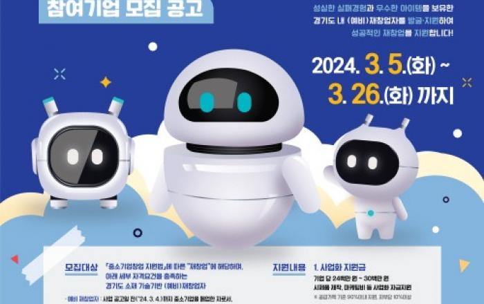 경기도와 경기도경제과학진흥원이 재창업 새싹기업을 위해 역량 강화부터 사업화 자금까지 원스톱 맞춤형 지원하는 ‘2024년 경기도 기술창업 재도전 지원사업’ 사업에 참여할 예비·초기 재창업자를 26일까지 모집한다. ‘경기도 기술창업 재도전 지원사업
