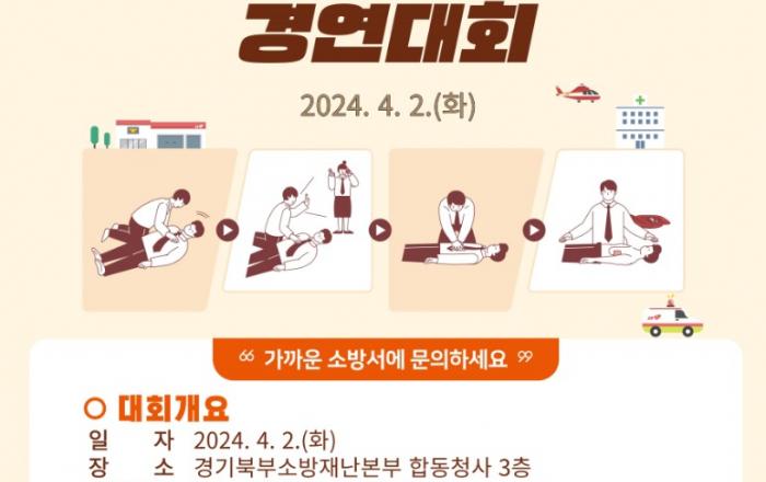 경기도북부소방재난본부가 도민들의 심폐소생술에 대한 관심과 이해도를 높이기 위해 오는 4월 2일 북부소방재난본부 합동청사에서 심폐소생술 경연대회를 연다. 대회는 학생‧청소년부와 대학‧일반부 2개 분야로 나뉘어 진행되며 분야별로 참가 인원은 각 1