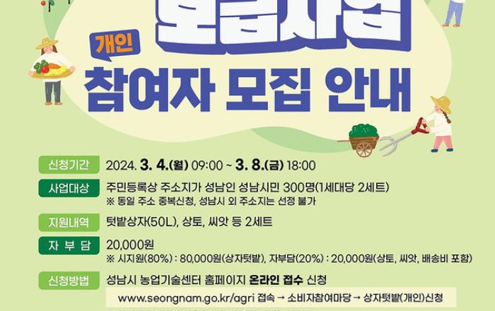 성남시는 베란다 , 옥상 등 생활 속 자투리 공간을 활용해 작물을 재배할 수 있는 상자텃밭 분양 희망자를 모집한다고 29 일 밝혔다 .