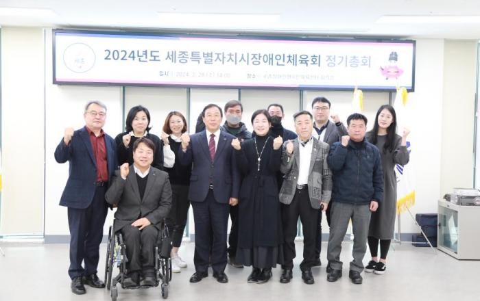 세종특별자치시장애인체육회가 28일 세종장애인형국민체육센터 회의실에서 관계자 30여 명이 참석한 가운데 ‘2024년도 정기총회’를 개최했다. 이날 정기총회에서는 2023년도 주요사업 추진 결과 및 추진 실적, 2024년도 기부금품 운영계획 등을 보고했다.