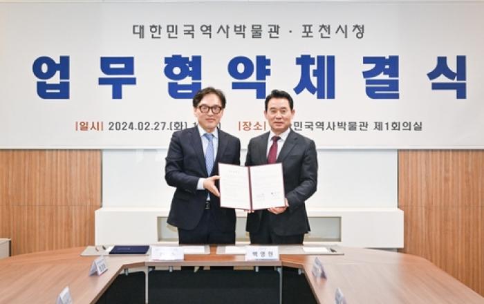 포천시는 지난 27일 대한민국역사박물관과 업무협약(MOU) 체결했다. 이날 협약은 양 기관이 상호간에 협력 체계를 구축하고 신뢰를 바탕으로 교류하고 협력해 상호 발전을 도모하기 위해 마련됐다. 협약 주요 내용은 ▲전시, 견학, 교육, 홍보 목적의 콘텐츠 개발 및 활