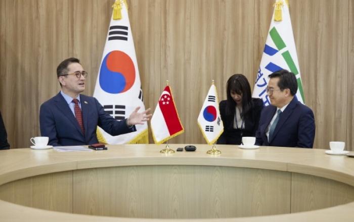 김동연 경기도지사가 에릭 테오(Eric Teo) 주한 싱가포르 대사를 만나 경기도와 싱가포르 간 인공지능(AI) 산업, 새싹기업(스타트업), 청년교류 등 협력 방안에 대한 의견을 나눴다. 김동연 지사는 27일 오후 경기도청에서 에릭 테오 싱