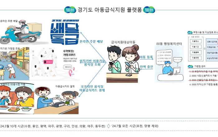 경기도가 급식지원 대상아동들이 낙인 효과 등을 걱정하지 않고 배달앱 비대면 주문으로 식사를 할 수 있는 ‘경기도 아동급식지원 플랫폼’을 3월부터 수원 등 10개 시군으로, 7월부터는 모든 시군으로 확대 운영한다. 경기도가 2