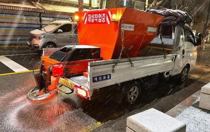 성남시는 21 일 밤 강설로 인한 시민들의 피해를 최소화하고 안전한 출근길을 위해 밤샘 제설작업을 실시했다 . 이는 21