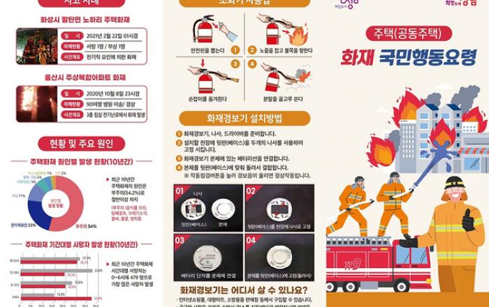 성남시는 화재 발생 시 시민의 생명과 재산을 보호하고 피해를 최소화하기 위해 주택과 아파트 화재 대비 국민행동요령 안내문을 자체 제작해 배포했다고 20 일 밝혔다
