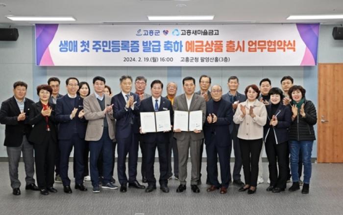 고흥군은 지난 19일 군청 팔영산홀에서 고흥새마을금고(이사장 유병곤)와 생애 첫 주민등록증 발급 축하를 응원하기 위해 적금 상품 출시 협약(MOU)을 체결했다. 고흥군과 고흥새마을금고의 이번 협약은 인구감소 대응 차원에서 고흥군에 주소를 두고 있는 17세 청소년을