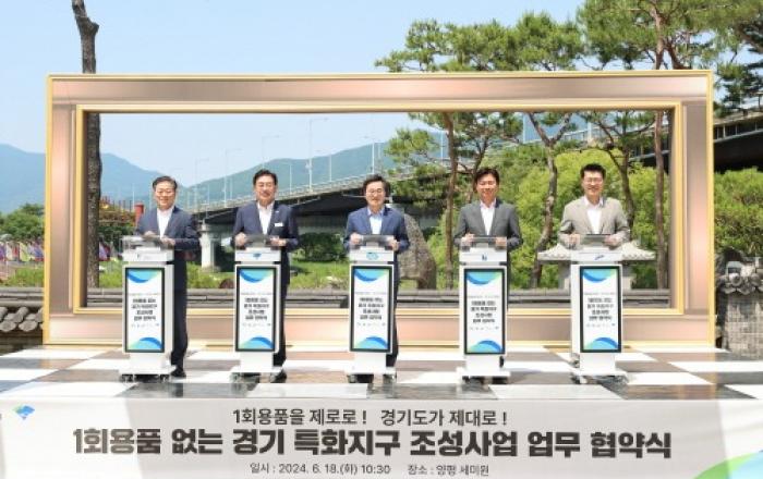 경기도가 기후위기 대응을 위해 부천시, 안산시, 광명시, 양평군 등 4개 시군 5곳에 1회용품 없는 특화지구를 조성한다. 김동연 경기도지사는 18일 양평군 세미원에서 조용익 부천시장, 김대순 안산부시장(대리 참석), 박승원 광명시장, 전진선 양