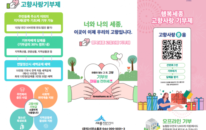 세종특별자치시가 올해 고향사랑기부제 모금 목표를 2억 원으로 정하고, 찾아가는 홍보부스 운영과 의미 있는 기금사업 개발 등 제도 활성화 방안을 마련해 추진한다. 시가 지난해 모금한 고향사랑기부금은 총 1억 4,500만 원에 달했다. 이는 출범 11년의