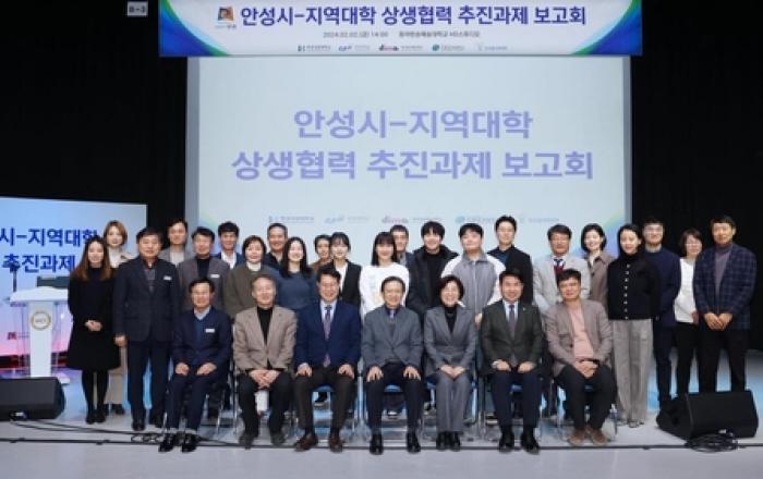 안성시는 지난 2일 동아방송예술대학교에서 안성시-지역대학 상생협력 추진과제 보고회를 개최했다. 이날 보고회는 안성시장을 비롯해 한경국립대 총장, 중앙대 산학협력단 부단장, 동아방송예술대 총장, 두원공과대 총장, 한국폴리텍대 반도체융합캠퍼스 학장 등 40여명이 참석한