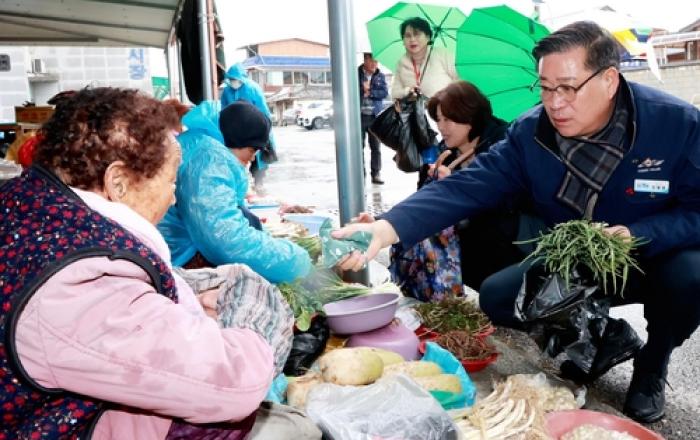 진병영 함양군수는 5일 전통시장 상인들을 만나고 지역 현안에 대한 의견을 청취하기 위해 안의전통시장과 토종약초시장을 방문했다. 이날 전통시장을 찾은 진 군수는 상인들과 함께 새해 덕담을 나누고, 시장의 상권 활성화 방안과 기반 조성 등에 대해 의견을 나눴으며, 설
