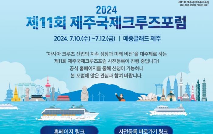 제주특별자치도와 해양수산부가 주최하고 제주관광공사가 주관하는 ‘제11회 제주국제크루즈포럼’이 오는 10일부터 12일까지 3일간 메종글래드 제주에서 개최된다.2013년 첫 개최 이후 매년 열리는 이 포럼은 국제 크루즈선사, 여행사, 국내외 주요 기항지 관계자들이 모여 동