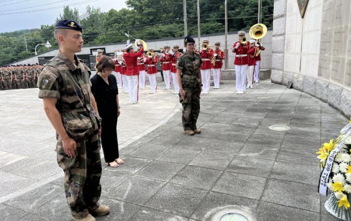 프랑스 생시르육군사관학교 생도들이 수원 ‘프랑스군 참전 기념비’를 찾아 6.25 전쟁에 참전한 프랑스 용사들을 추모하고 헌화했다. 이날 참배에는 생시르육군사관학교 ‘구필(Goupil) 대위’ 기수 생도 180명과 장교, 프랑스대사관 관계자, 수원시 관계자 등이 함께했다