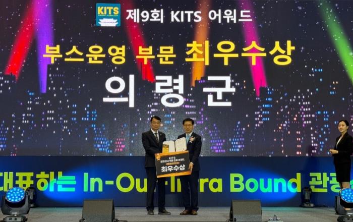 ▲ 경남포스트 제공의령군은 지난 19일부터 22일까지 나흘간 고양시 일산 킨텍스에서 열린 ‘제9회 대한민국 국제 관광박람회’에서 기초자치단체 부스운영 부문 최우수상을 받았다고 23일 밝혔다.▲ 제9회 대한민국 국제 관광박람회 최우수상 수상하는 의령군 관계자(의령군 제공