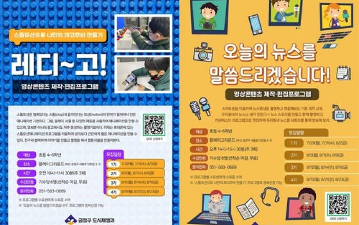부산시 금정구는 초등학생의 창의적 문제해결 강화 등을 위해 관내 초등학교 4∼6학년을 대상으로 플레이그라운드(서동로72번길 3-7)에서' 영상 콘텐츠 제작·편집 프로그램'을 운영한다고 밝혔다. '영상 콘텐츠 제작·편집 프로그램'은 7월 29일부터 8월 23일까지 4