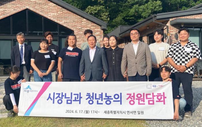 최민호 세종특별자치시장이 지난 17일 연서면 일원에서 화훼류 재배 청년 농업인과 미래 농업 등을 논의하는 간담회 자리를 가졌다. 이번 청년농과의 간담회는 지난 4월 이후 청년농의 목소리를 정책에 반영하기 위해 두 번째로 마련된 것으로, 화훼류 재배 청년